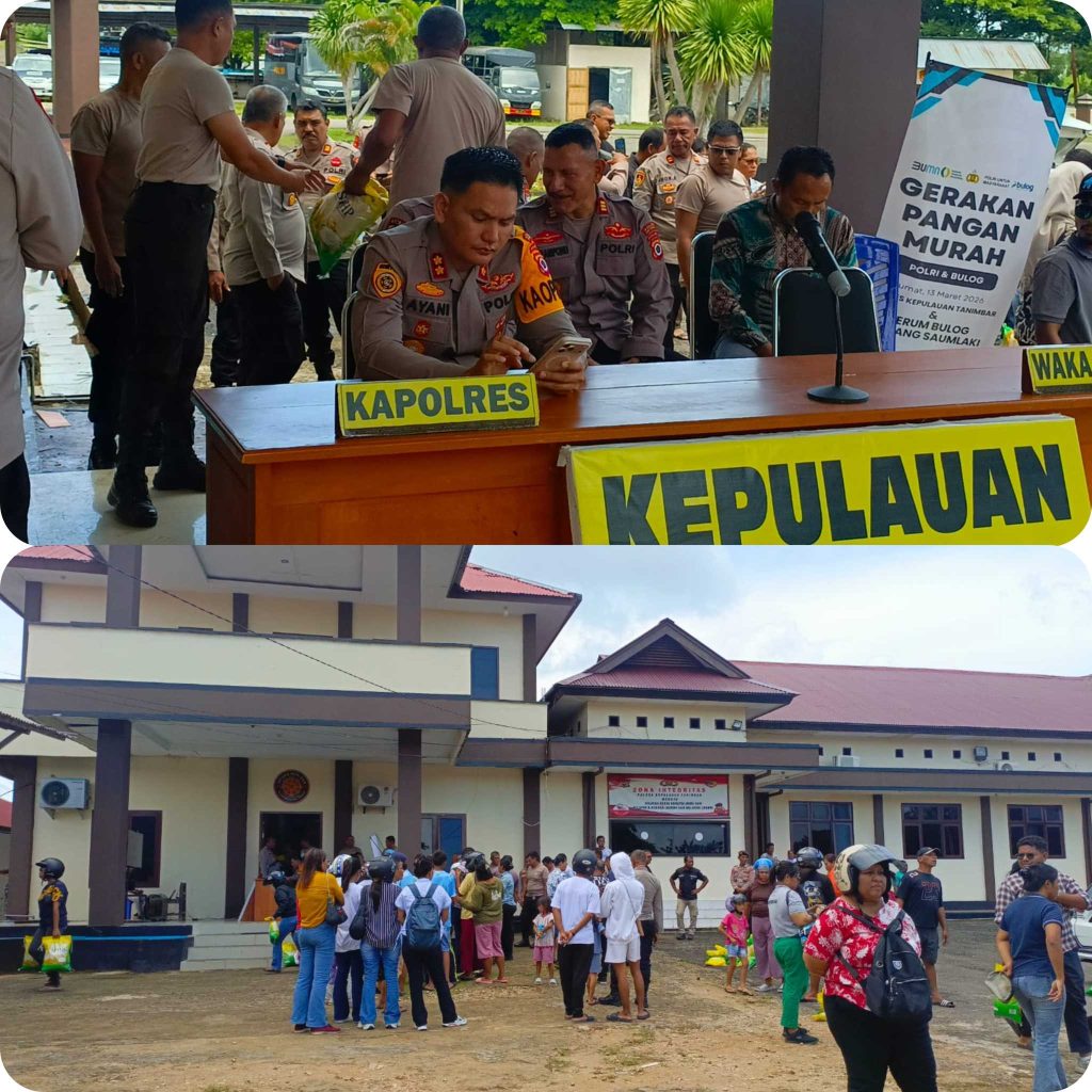 Saumlaki.forummaluku.com – Polres Kepulauan Tanimbar menggelar Gerakan Pangan Murah di halaman Mapolres Kepulauan Tanimbar, Jumat (13/3/2026). Kegiatan ini dilaksanakan sebagai bentuk kepedulian terhadap masyarakat, khususnya warga dengan kondisi ekonomi lemah.